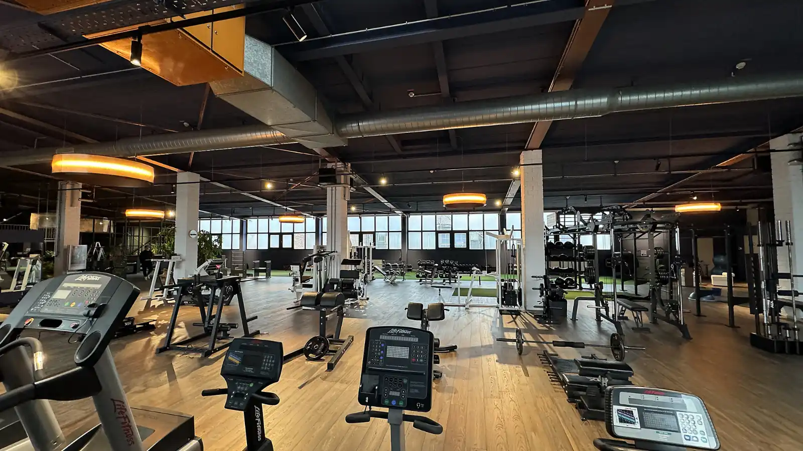 Große Ringleuchten ORBIS im Trainingsbereich sowie dekorative Schmuckleuchten im Eingangs- und Thekenbereich sorgen für eine einladende und moderne Atmosphäre im Studio. Clever platzierte Strahler beleuchten die Wände, um das Studio optisch zu vergrößern.